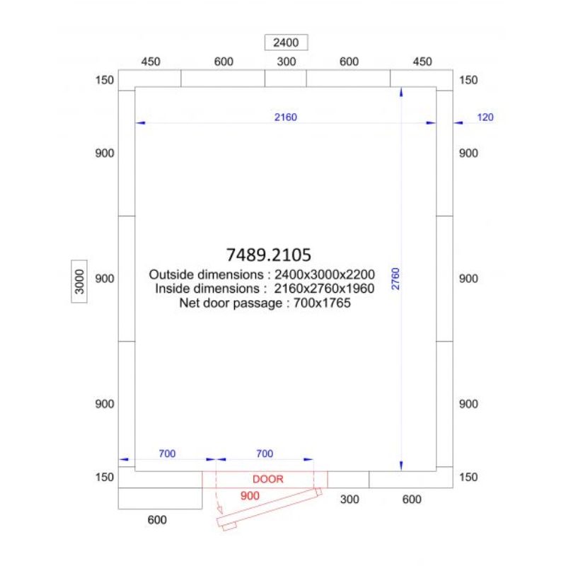 - Dimensions intérieures : 2160 x 2760 x 1960 mm