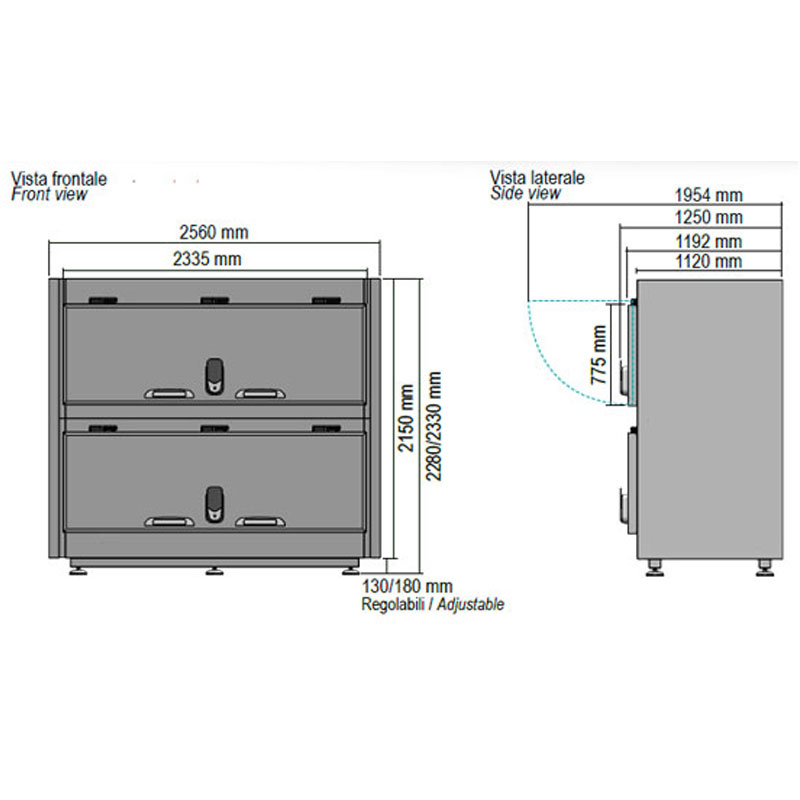 - Dimensions intérieures (LxPxH) : 2400 x 1090 x 1990 mm, offrant un espace généreux pour le stockage des corps avec efficacité.