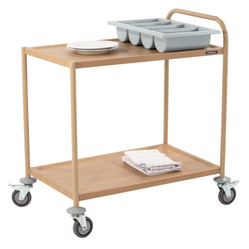 Chariot de service imitation bois 2 plateaux 1 arceau CASSELIN