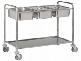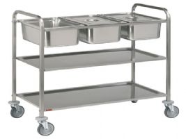 - Le chariot en inox de cantine: ce chariot est consacré principalement aux écoles, garderies et collectivités. La particularité de ce type de chariot est la possibilité de fixer et d’apporter des bacs de déchets ou des poubelles.