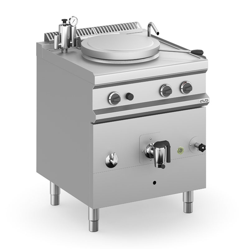 La marmite est réalisée en acier inox AISI 304, avec un fond en AISI 316 pour une meilleure résistance à la corrosion. Le couvercle en acier inox AISI 304 permet d'éviter les pertes de vapeur et de chaleur (disponible comme accessoire le couvercle double isolant) Robinets d'eau froide et chaude avec col de cygne sur le dessus. Chauffage indirect par vapeur basse pression produite par l'eau dans la cavité intermédiaire. La vapeur basse pression chauffe uniformément la surface du récipient. Afficheur de niveau d'eau creux situé sur le panneau avant. Plan de travail en acier inoxydable AISI 18/10 épaisseur 1 mm. Excellent alignement avec joints de liaison.