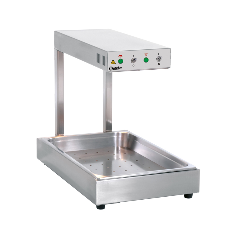 Profitez de ce pont thermique à infrarouge GN1/1, en acier inoxydable, avec bac GN et tôle perforée compris.
