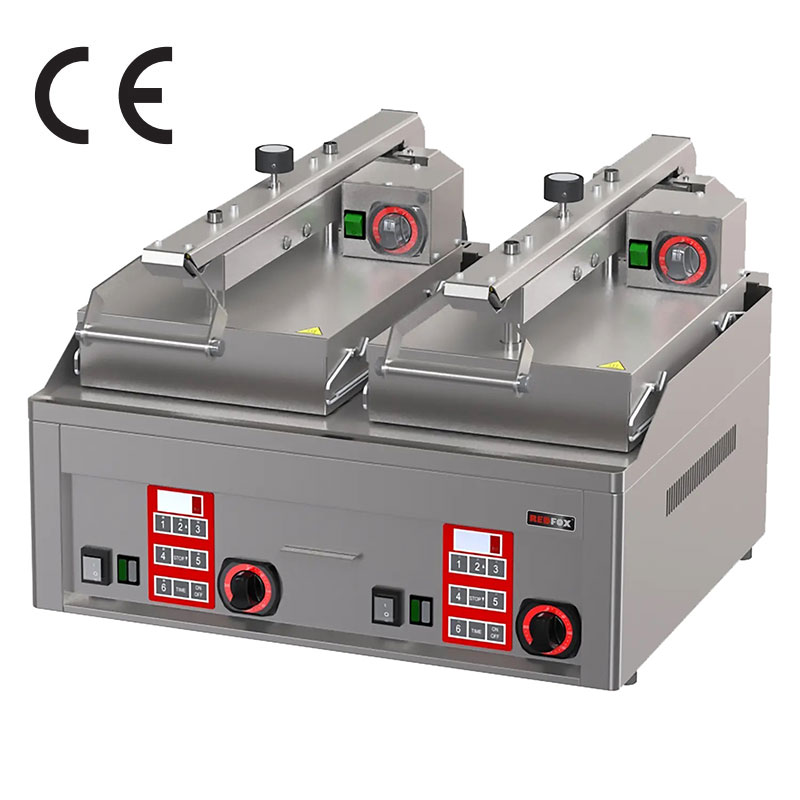 Découvrez le clam-grill steak électrique double semi-automatique REDFOX, un équipement de pointe conçu pour répondre aux besoins des professionnels de la restauration. Polyvalent, performant et durable, ce grill est parfait pour cuire vos viandes, poissons, légumes et bien plus encore avec une précision optimale.