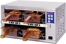 Le coffre de maintien en température permet aux opérateurs de faire cuire des composants du menu à l'avance et de les stocker dans les bacs de rétention jusqu'à ce que la commande est reçue. Quand la commande est passée, l'équipe prépare la commande en utilisant les composants chaud et frais à disposition dans le coffre de maintien en température. Le bac de maintien en température permet de servir à la commande et ainsi augmenter la vitesse de service tout en maintenant la qualité des produits.