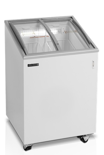 Congélateur coffre avec couvercles coulissants vitrés bombés