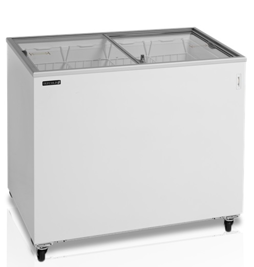 Congélateur coffre avec couvercles coulissants vitrés plats
