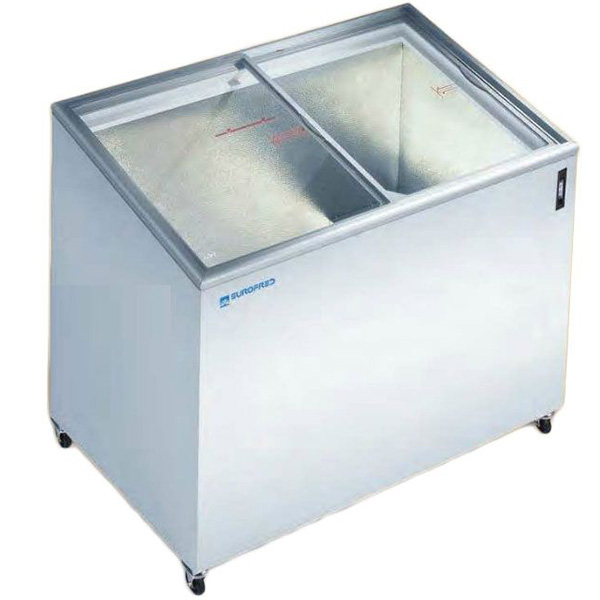 Congélateur coffre portes vitrées inclinées coulissantes