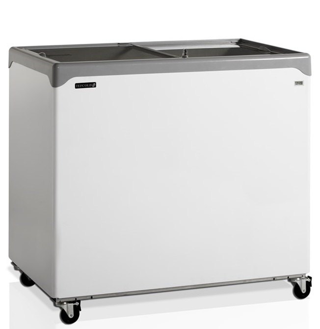 Congélateur coffre élégant avec couvercles coulissants vitrés plats