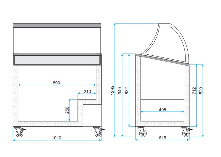 -Dim ext(LxPxH): 1010 x 615 x 1295 mm