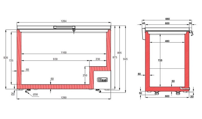 -Dim int (LxPxH): 1160 x 480 x 725 mm