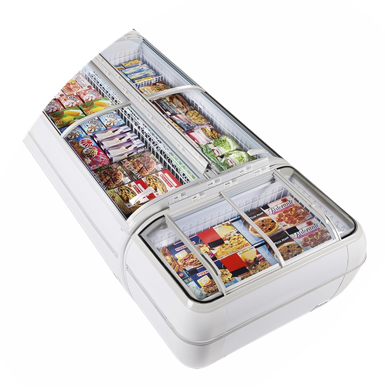 -Le résultat est plus d'espace pour le contenu avec un encombrement réduit.Les unités sont idéales pour les supermarchés ou les épiceries avec un espace limité, car elles ont le même volume en litres que deux congélateurs standard de même longueur, malgré une profondeur moindre.