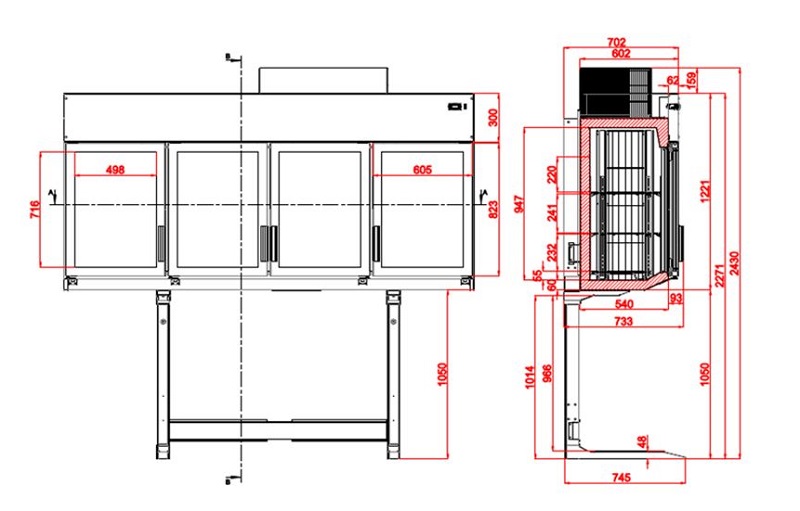 Armoire murale congélateur/refroidisseur à 4 portes pour maximiser l'espace de stockage