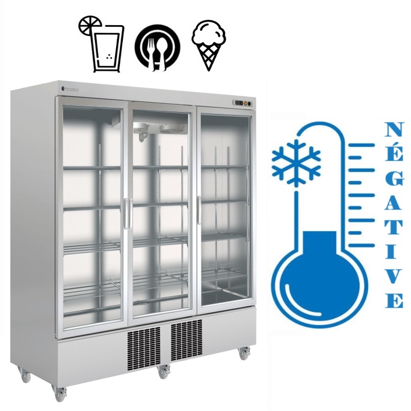 Plongez dans l'univers de nos congélateurs vitrés à trois portes ou plus, offrant une solution idéale pour la conservation de vos produits surgelés. Disponibles en finition inox, noir ou blanc, nos armoires réfrigérées verticales négatives offrent une diversité de capacités et dimensions pour répondre à vos besoins spécifiques. Que ce soit pour les supermarchés, les restaurants ou les pâtisseries, nos congélateurs vitrés sont parfaits pour la vente et la conservation des produits surgelés. Leur design moderne et leur visibilité maximale garantissent une présentation attrayante des produits tout en assurant une conservation optimale.