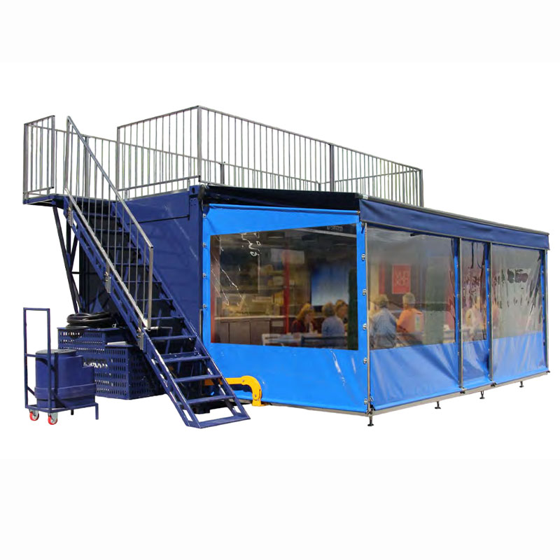 Idéal pour les festivals, marchés, événements et services de traiteur, le Container Restaurant avec Terrasse FOOD TAINER CONTAINER WITH PLATFORM vous permet de préparer et de servir des repas de qualité supérieure tout en offrant une expérience unique à vos clients.