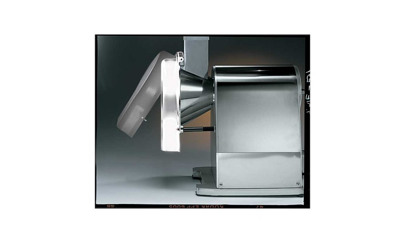 Solide, compact et puissant pour un rendement optimal. Machine robuste, compacte, puissance et performante, construite en acier inox et aluminium anodisé. - Cône porte-disques en aluminium poli V, - complètement démontable pour le nettoyage; - disques râpeurs en acier et aluminium; - trémie en inox; - transmission à courroie plate Poli-V; - protection sur cône; - panneau commandes électronique à 24 V avec dispositif de sécurité NVR.
