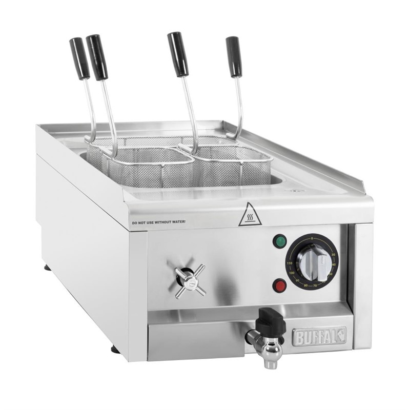 Le cuiseur à pâtes électrique Buffalo série 600 est une superbe solution pour les cuisines professionnelles ayant des pâtes au menu. Que vous cuisiniez des pâtes, des nouilles, des raviolis ou des légumes, le cuiseur à pâtes Buffalo élimine le besoin d'une plaque de cuisson à gaz ou électrique séparée. Station de comptoir fiable et grande capacité.