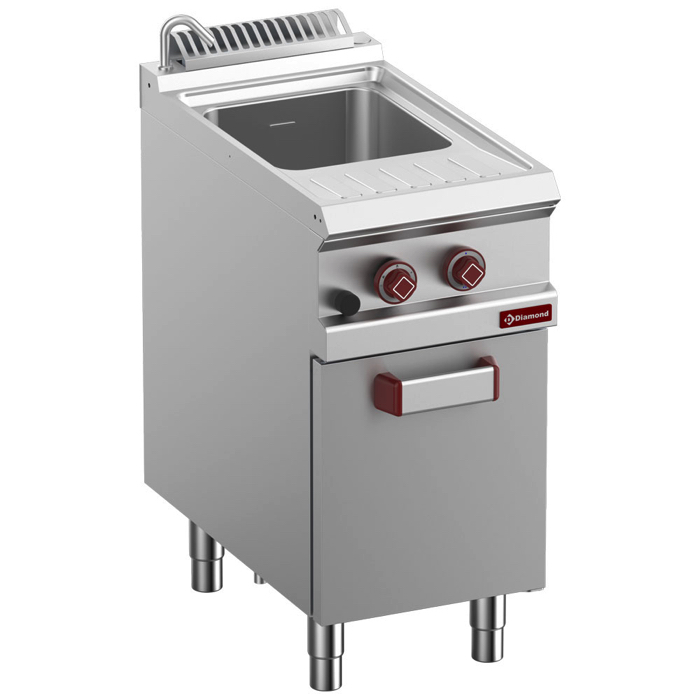 - Chauffage à gaz, par des brûleurs à flamme horizontale, placés en-dessous de la cuve. Régulation de la flamme des brûleurs, par une vanne de gaz, allumage par veilleuse et système de sécurité par thermocouple, dispositif piézoélectrique, accessibilité frontale permettant une maintenance très aisée.