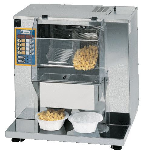 - Les grands paniers, qui peuvent contenir, chacun, une portion double, permettent une productivité élevée et le réchauffe-sauce incorporé consent d’avoir les sauces toujours prêtes et à la juste température.