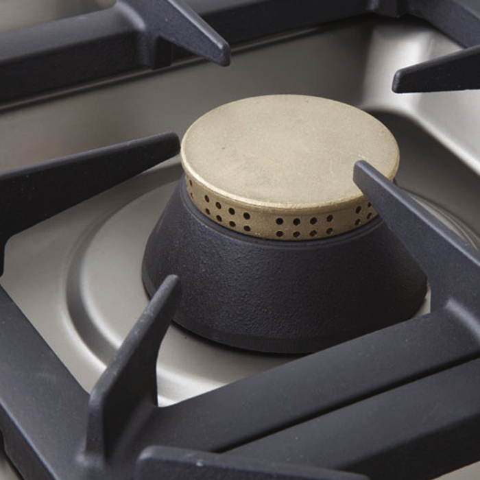 Brûleurs à feux vifs en fonte traitée étanche, couronne en laiton (à très haut rendement). Régulation des bruleurs de 1,5 à 7 kW par vanne gaz, allumage par veilleuse et sécurité par thermocouple, accessibilité frontale permettant une maintenance très aisée.