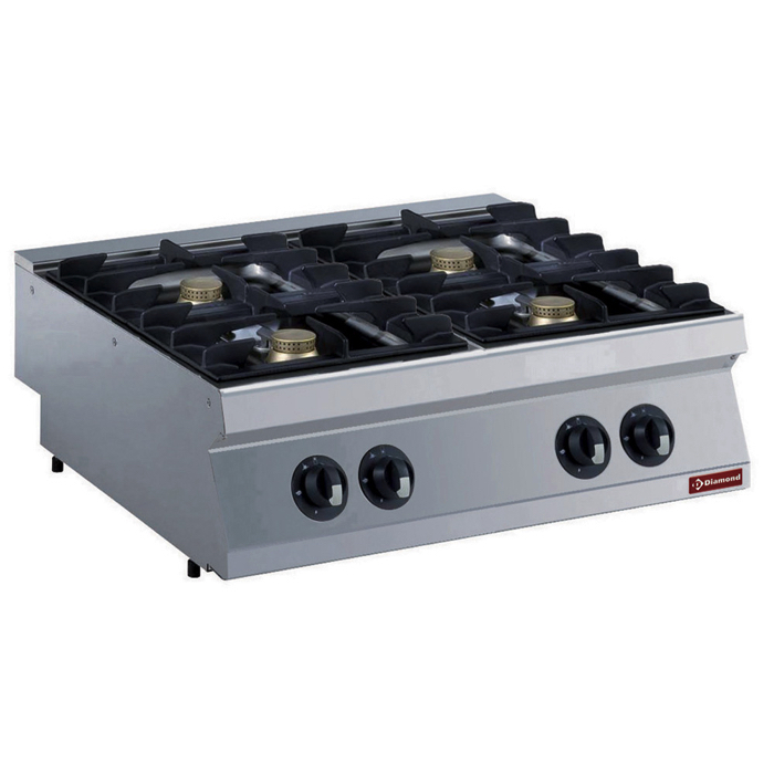 Brûleurs et couronnes en laiton à très haut rendement, technologie 'Flower Flame', régulation par une vanne gaz, grilles en fonte émaillée, (385x285 mm).