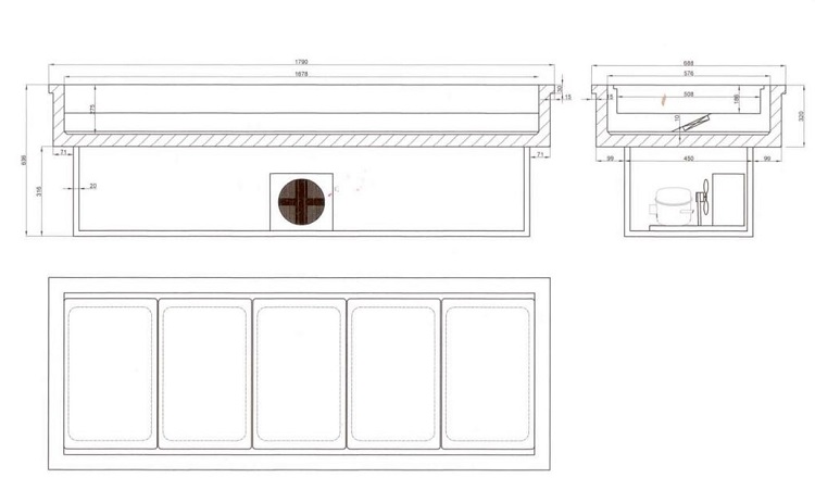 -Capacité bacs GN: 5 pces