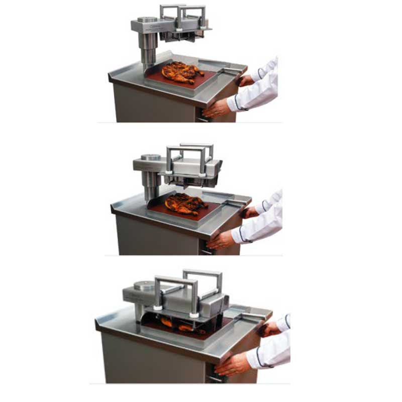 Le GRESILVA® MC1-580 est une découpeuse électrique automatique conçue pour la production rapide et sécurisée de poulets découpés dans les ateliers de transformation, abattoirs, cuisines industrielles et rôtisseries professionnelles. Sa conception innovante permet de couper un poulet entier en seulement 6 secondes, avec une découpe nette et uniforme. Pensée pour une utilisation simple et sûre, elle ne nécessite qu’un opérateur et garantit une efficacité maximale tout en minimisant les risques d’accidents ou de blessures répétitives.