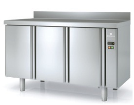 - Plan de travail en acier inoxydable AISI-304 avec façade bombée et plastron arrière sanitaire de 100 mm (en option sans plastron)