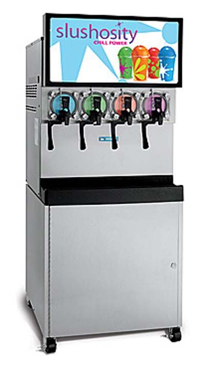 Distribuer un produit léger et moelleux, haute dépassement de neige fondante dans un système sous pression de cette modulaire, comptoir congélateur. Système non pressurisé option produit une bouillie humide, inférieure dépassement. L'air est évacué par le haut de l'appareil pour accueillir un espace de comptoir serré. Panier en option convertit l'appareil à un modèle de plancher autonome, et permet de stocker le sirop.