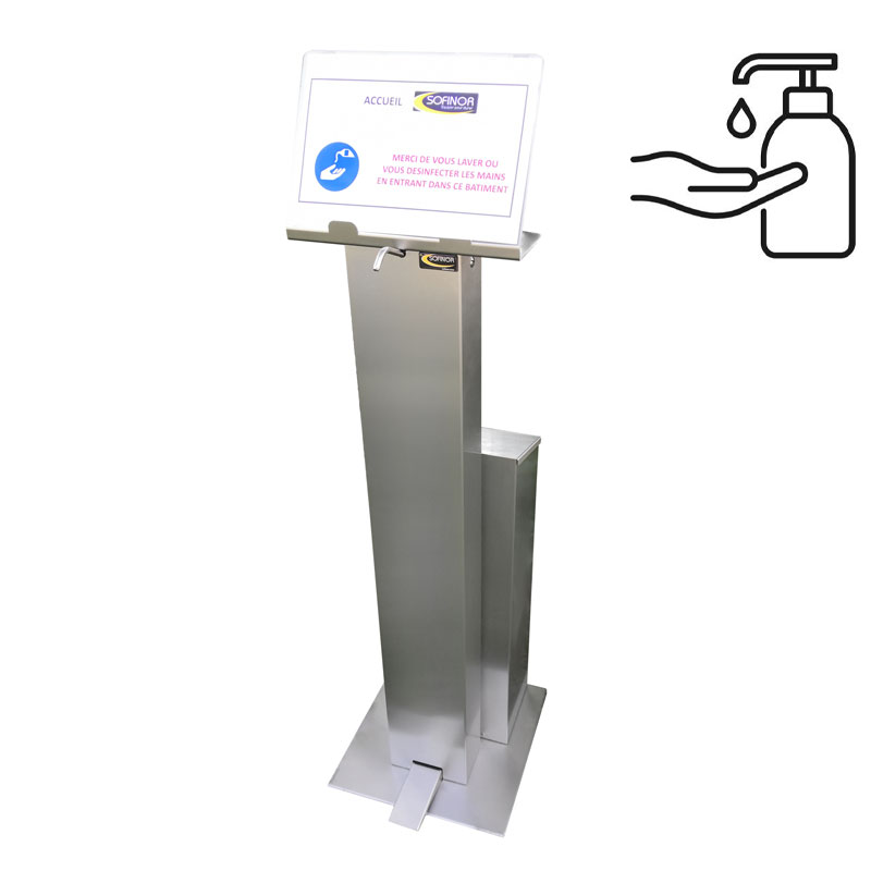 DISTRIBUTEUR DE GEL HYDROALCOOLIQUE A PÉDALE GRANDE CAPACITÉ - SOFINOR (Modèle : LMDGP02)