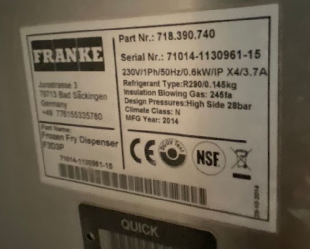 Distributeur et congélateur de frites d'Occasion FRANKE
