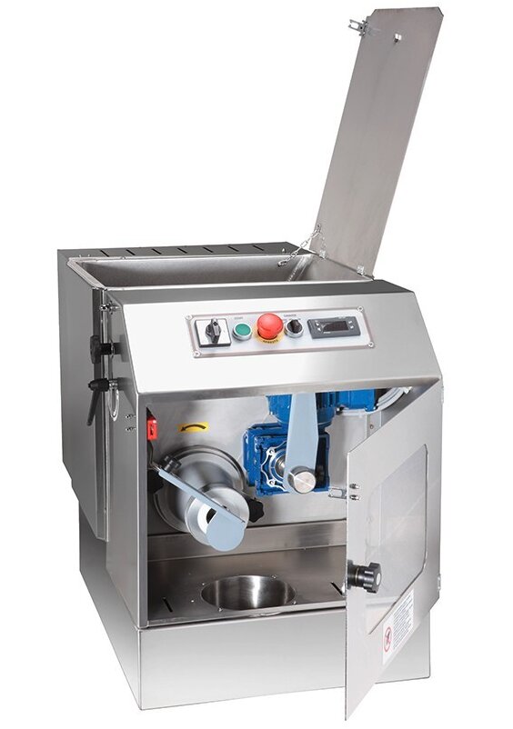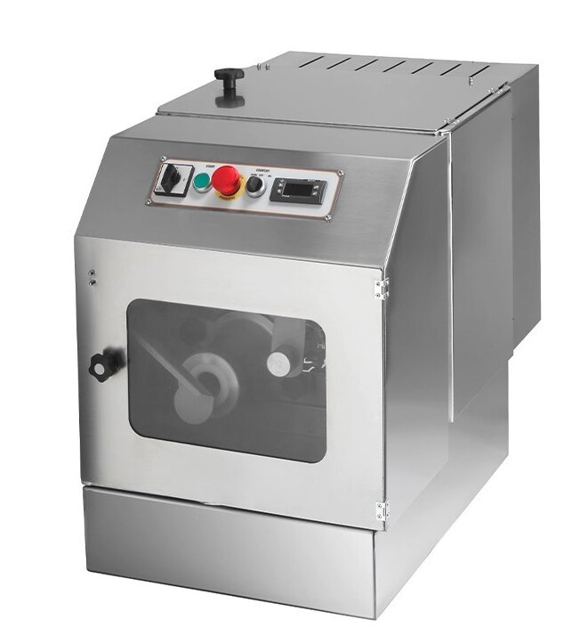 -Cette machine sert à diviser la pâte en portions selon les grammes choisis de 50 à 300 gr avec cône fixe à l’intérieur duquel on intervient à chaque fois avec des bagues de réduction pour obtenir avec une tolérance de ± 10% 5 classes de grammes: 50/90, 80/130, 120/180, 170/230, 220/300.