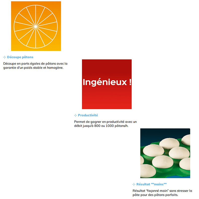 - Augmentation de la productivité avec une cadence pouvant atteindre 1000 pâtons/h.