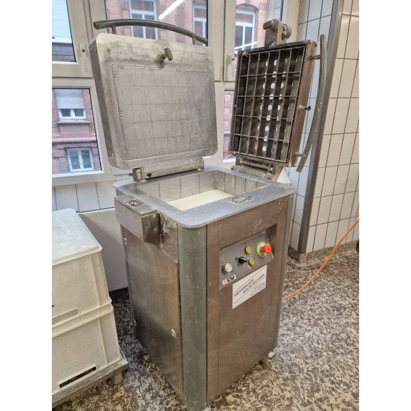 La diviseuse STAF – Occasion permet de diviser la pâte de manière rapide et précise grâce à sa grille de 20 divisions égales. Sa capacité utile varie de 3 à 20 kg de pâte selon le taux d’hydratation et la densité du mélange. L’équipement est doté d’un capot double verrouillable assurant la sécurité pendant la découpe, ainsi que d’un panneau de commande frontal avec boutons marche/arrêt simples et ergonomiques. Compacte et stable, elle s’intègre facilement à tout plan de travail professionnel.