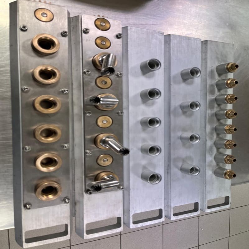 Groupe de dosage à rouleaux en polyuréthane alimentaire, permettant de couler et extruder les mélanges de manière uniforme en dimension et en poids
