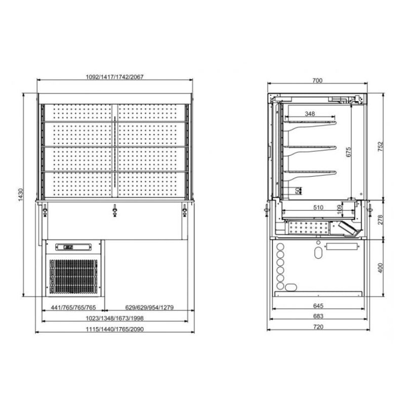 Drop-in Vitrine Cubique Réfrigérée Modèle Mural Roll-Up 4/1 Combisteel