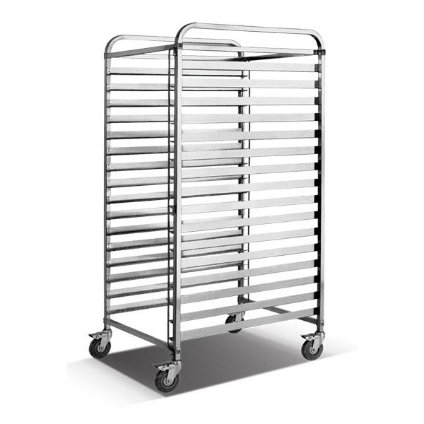 Le chariot inox boulangerie de 16 étages, primordiale pour les déplacements des produits de boulangerie il est dotée d'une capacité de charge très importante. Cet article est de dimension 600×820x800 mm, et ses grilles sont de dimensions 600x800 mm
