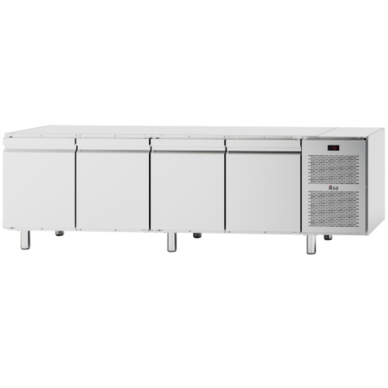 Les nouvelles tables réfrigérées NEOS sont construites avec une structure monocoque en acier inox AISI 304. Finition extérieure scotch-brite satinée ; épaisseur d'isolation de 60 mm pour le corps et de 50 mm pour les portes avec mousse à haute densité (40 kg/mc) ; dos extérieur en acier inox scotch-brite AISI 304 ; pieds en acier inox réglables en hauteur h. 140/230 mm ; chambre froide avec coins arrondis pour un meilleur nettoyage intérieur ; portes à fermeture automatique avec arrêt à 95° ; joints magnétiques des portes et des tiroirs facilement remplaçables ; groupe frigorifique monobloc ; système de ventilation canalisée à l'arrière pour une température interne parfaitement homogène ; dégivrage par gaz chauds et évaporation automatique de l'eau de condensation ; poignées ergonomiques ; compartiment technique en option à gauche dans les deux versions ; alimentation électrique standard 230V/50Hz ; gaz réfrigérant écologique R290 ; charnières supérieures et inférieures des portes fixées à l'avant du corps (interchangeables sans devoir démonter le plan de travail) ; portes réversibles.
