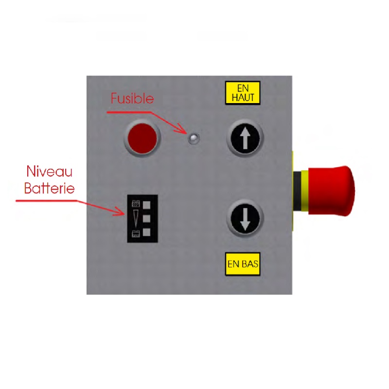 Cet élévateur est alimenté par des batteries, éliminant ainsi le besoin d'une connexion électrique permanente. L'écran de contrôle intégré vous permet de surveiller en temps réel l'autonomie de la batterie, assurant ainsi une utilisation continue et sans interruption.