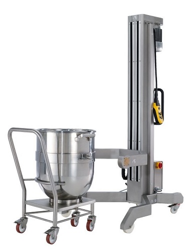 L'élévateur EBF élève et décharge électriquement les cuves des batteurs de la séries I et F (40l et 60l), augmentant le confort et la productivité des procès de fabrication.