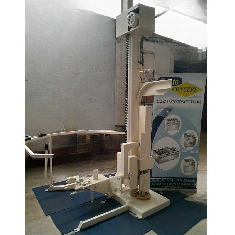 -Cet élévateur est conçu pour soulever des cuves et les déverser dans une trémie ou peseuse