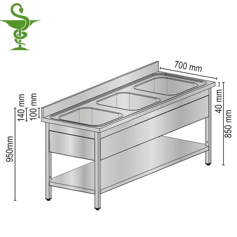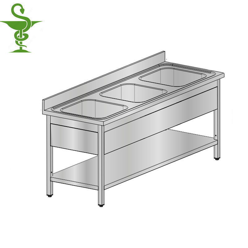 Découvrez l'évier ouvert MED DOM, modèle TL18MID3AL, conçu pour les professionnels de la santé, les laboratoires et les cuisines industrielles. Fabriqué en acier inoxydable de haute qualité, cet évier triple offre robustesse, hygiène et durabilité pour répondre aux exigences des environnements professionnels.