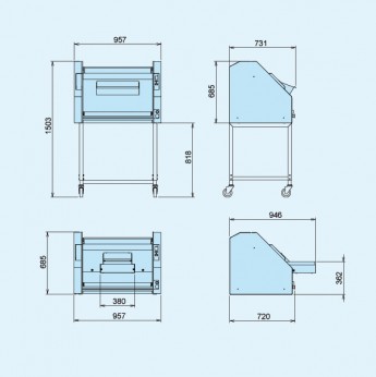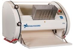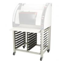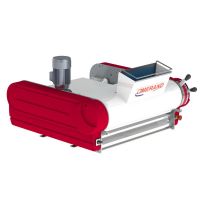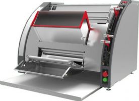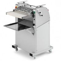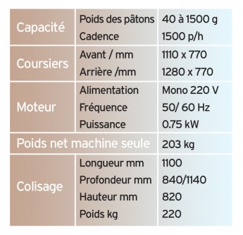 La géométrie du châssis est parfaitement contrôlée. Les flancs en aluminium forte épaisseur 10 mm, sont usinés dans la masse, finement entretoisés et bridés sur marbre. Rouleaux de laminage: 3 rouleaux lamineurs entraînés permettant un laminage progressif avec pré-laminage. Le roulage se fait sous un tapis lourd à forte charge. La répartition du poids est non linéaire pour une bonne amorce. Les coursiers en laine sont de forte épaisseur (6 mm) et se changent rapidement. Ils sont entraînés par des rouleaux de grande section (Ø 80 mm). L’entretien est facile: les racleurs sont aisément accessibles et le tapis lourd est démontable pour être aéré. Sécurité assurée par une goulotte inox mobile reliée à un contact magnétique qui permet à la machine de faire un arrêt automatique en cas de danger. Capot en acier peint ou inox (en option).