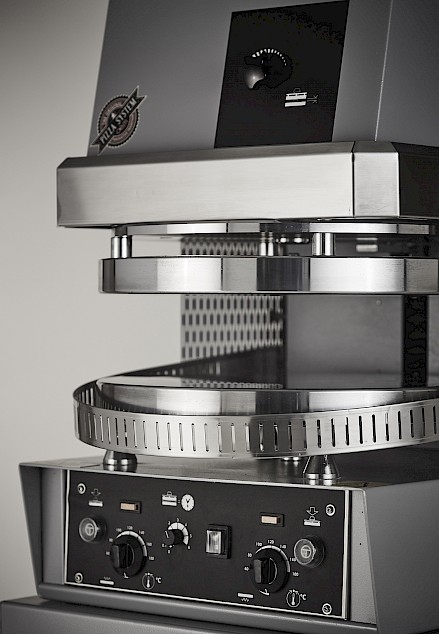 • Permet de planifier au mieux le travail. Si utilisée de façon optimale (pâtons à température ambiante et bien-levés, temps de pression pas supérieurs à 3 secondes) elle permet la formation de plusieurs disques de pâte qui peuvent être 'empilées” l’un sur l’autre, pour faire face à commandes soudaines et nombreuses