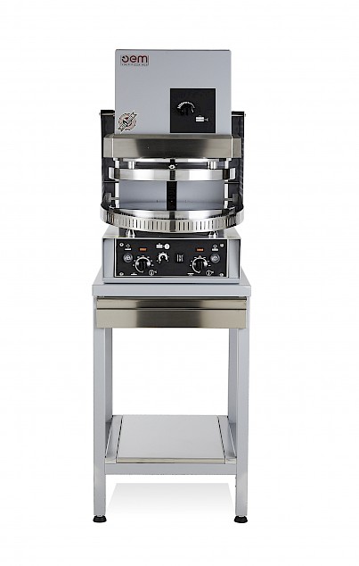• Permet de planifier au mieux le travail. Si utilisée de façon optimale (pâtons à température ambiante et bien-levés, temps de pression pas supérieurs à 3 secondes) elle permet la formation de plusieurs disques de pâte qui peuvent être 'empilées” l’un sur l’autre, pour faire face à commandes soudaines et nombreuses