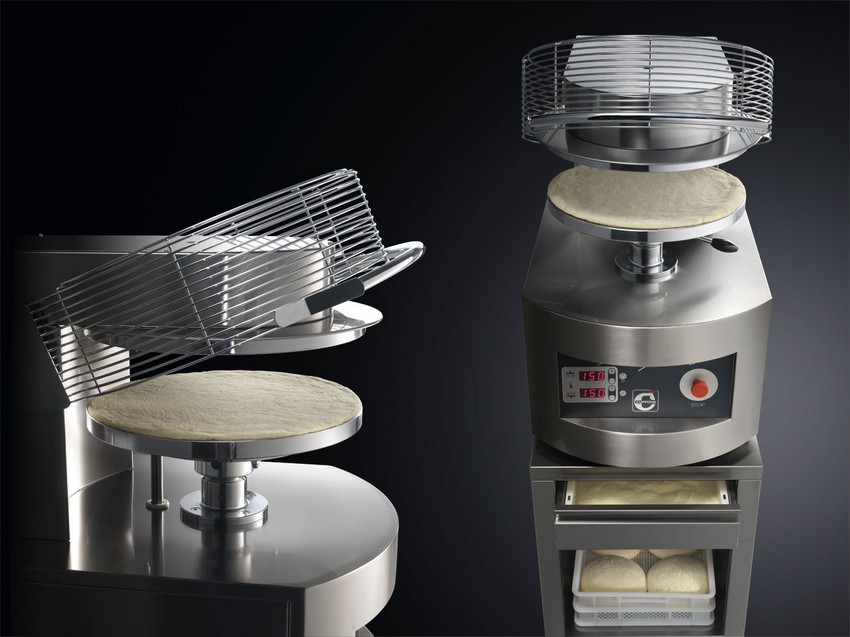 -Presse spéciale, conçue exclusivement pour aplatir et légèrement précuire les fonds de pizzas et tartes flammées. 7 modèles distincts pour réaliser différentes tailles (5 appareils munis de plateaux incurvés et 2 modèles en plateaux plats), pouvant aller jusqu’à un diamètre maximum de 520 mm.