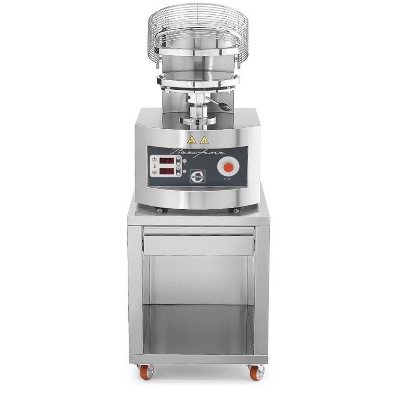 -Presse spéciale, conçue exclusivement pour aplatir et légèrement précuire les fonds de pizzas et tartes flammées. 7 modèles distincts pour réaliser différentes tailles (5 appareils munis de plateaux incurvés et 2 modèles en plateaux plats), pouvant aller jusqu’à un diamètre maximum de 520 mm.