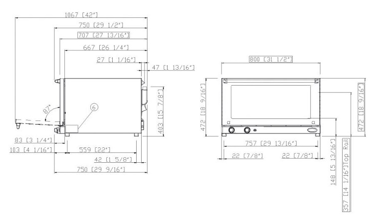 -Four à convection, avec contrôle analogique et chambre de cuisson en acier. Il permet le réglage du temps et de la température de cuisson.