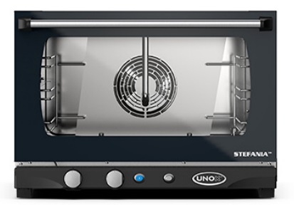 -Four à convection avec humidité, contrôle analogique et chambre de cuisson en acier INOX 304. Temps de fonction , température, pourcentage de vapeur et 2 vitesses de ventilation.