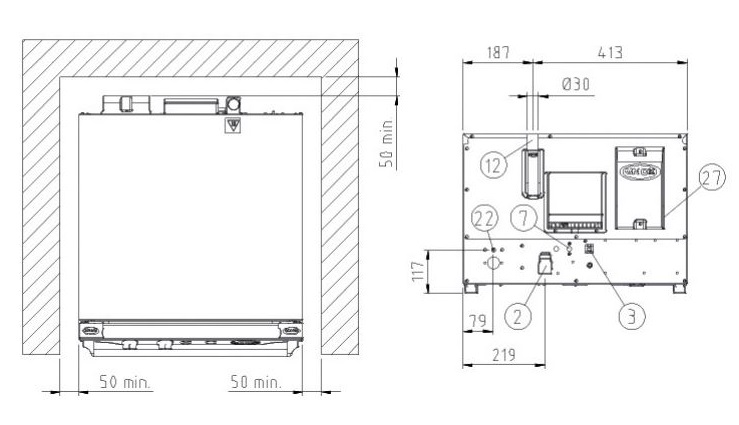 • Chambre de cuisson avec supports des plaques en acier chromé