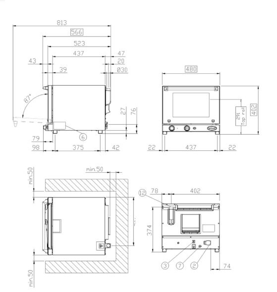 -L’air est l’instrument de transmission de la chaleur et donc le moyen de cuire le produit. Les performances de ventilation sont fondamentales pour obtenir des cuissons uniformes sur tous les points de chaque plat à four, sur tous les plats à four. C’est pour cette raison que l’étude des écoulements d’air à l’intérieur de la chambre de cuisson joue dans la conception de tous les fours CALDOBAKE un rôle de première importance. -La technologie Protek.SAFE fait partie du programme NON.STOP EFFORTS avec lequel SPIDOCOOK s’engage à réduire au minimum l’impact environnemental de ses produits et des processus de cuisson avec lesquels ils sont réalisés.